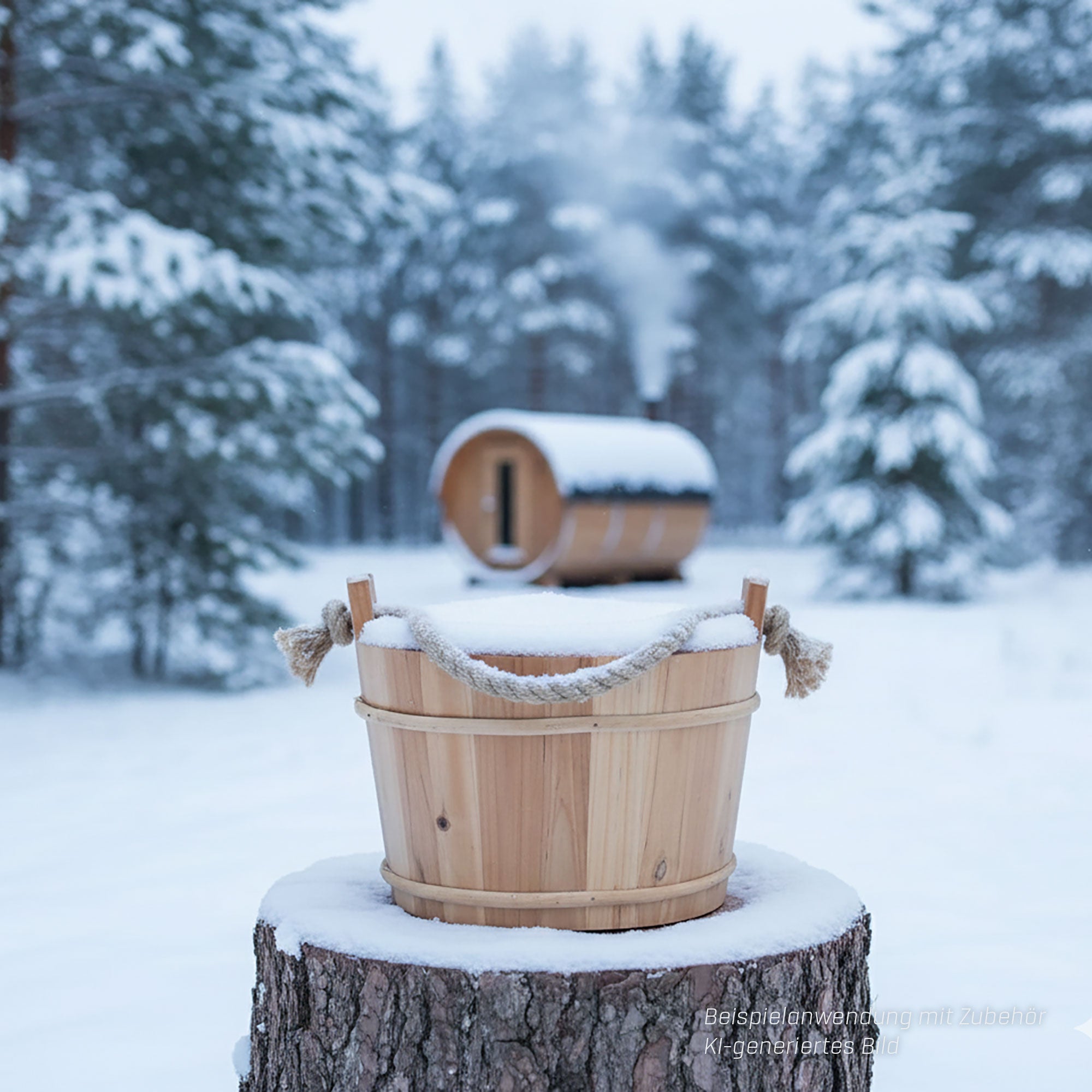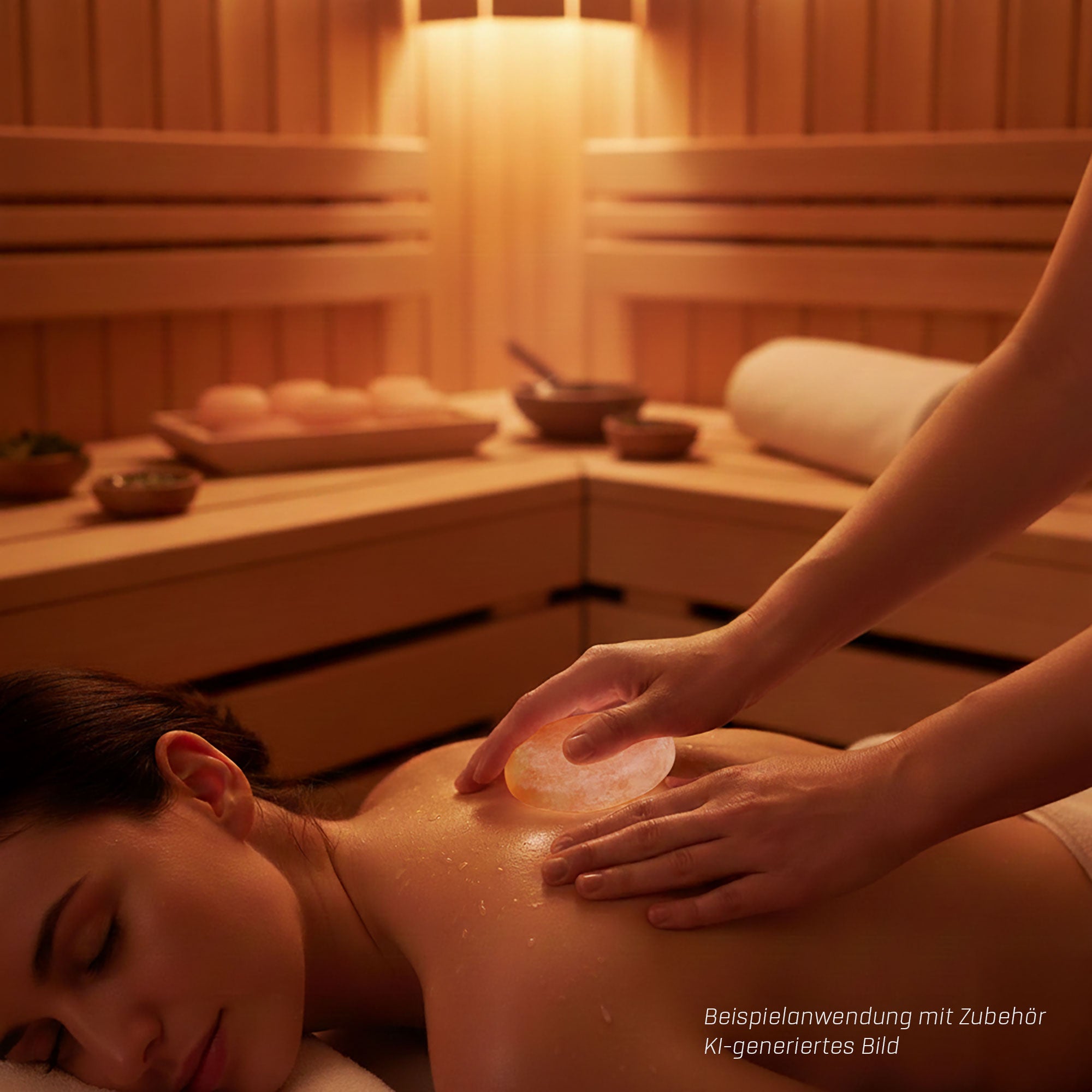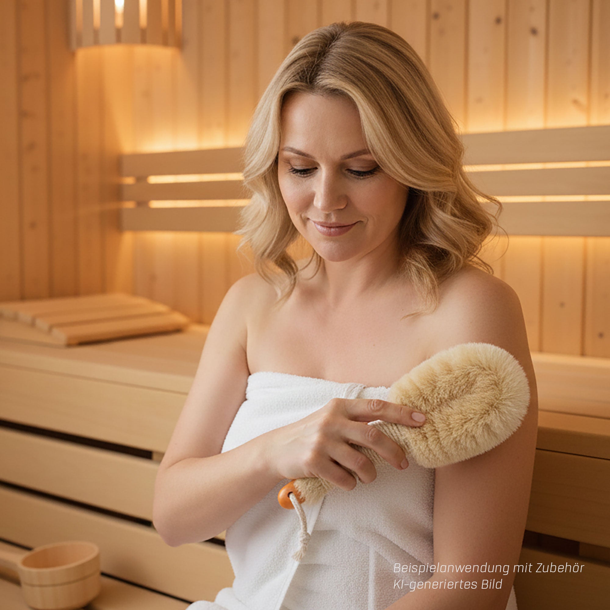 - Hochwertiges Zubehör: Aufgusseimer, Fußroller aus Lotusholz, Körperbürsten zur Hautpflege und Vitalisierung.