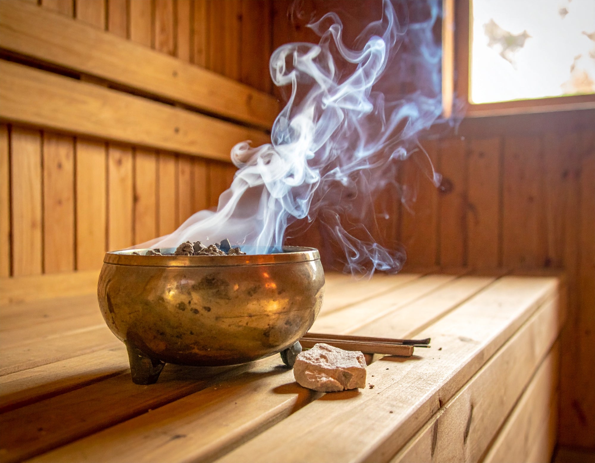 Das Räuchern in der Sauna ist ein uraltes Ritual, das tief entspannt und die Sinne öffnet. Beim Verglimmen unserer ausgesuchten Mischungen durchströmt feiner Rauch die Sauna und sorgt für eine besondere Atmosphäre, Reinigung und Harmonie für Körper und Geist.