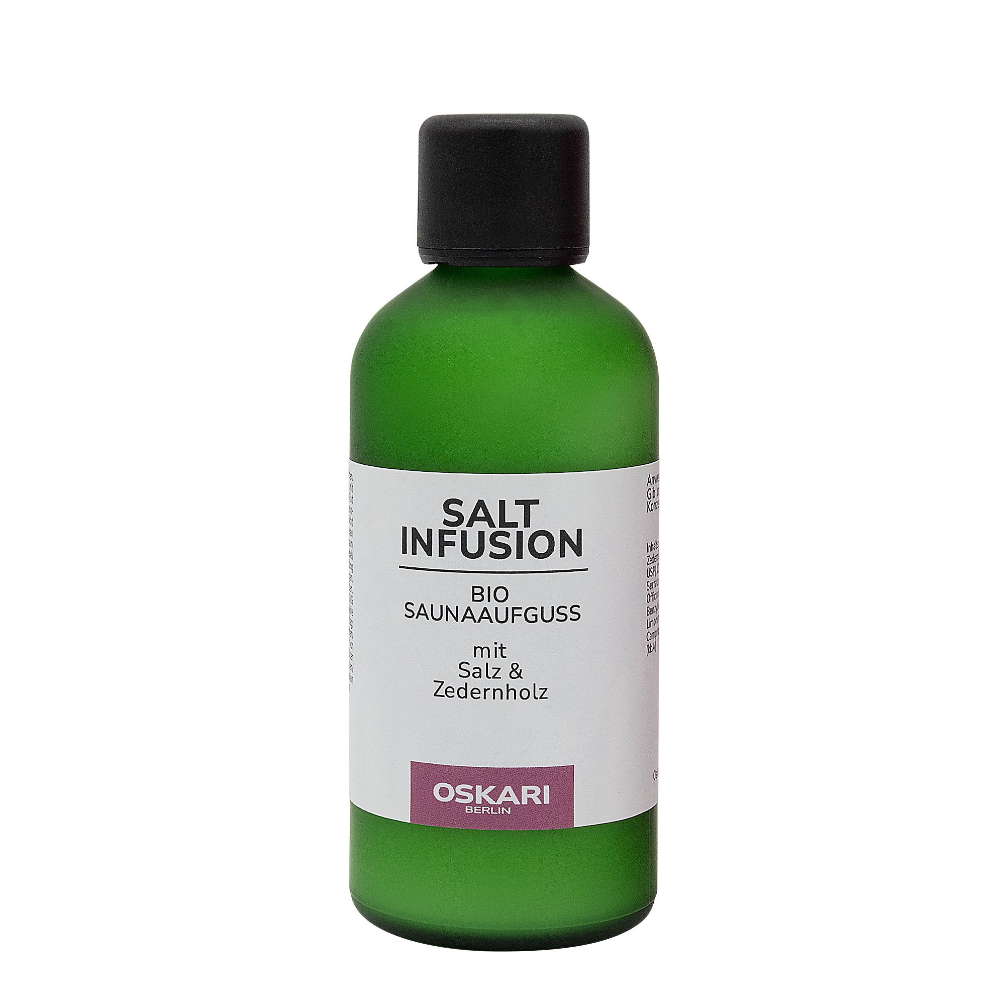 Alle Salz-Aufgüsse von Oskari bestehen aus naturreinen ätherischen Bio-Ölen, sind ohne Alkohol und werden nachhaltig produziert. Du mischst einfach einige Verschlusskappen mit Wasser, gießt den Aufguss wie gewohnt auf und genießt sofort die Vorteile des Salz-Dampfes in deiner Sauna.