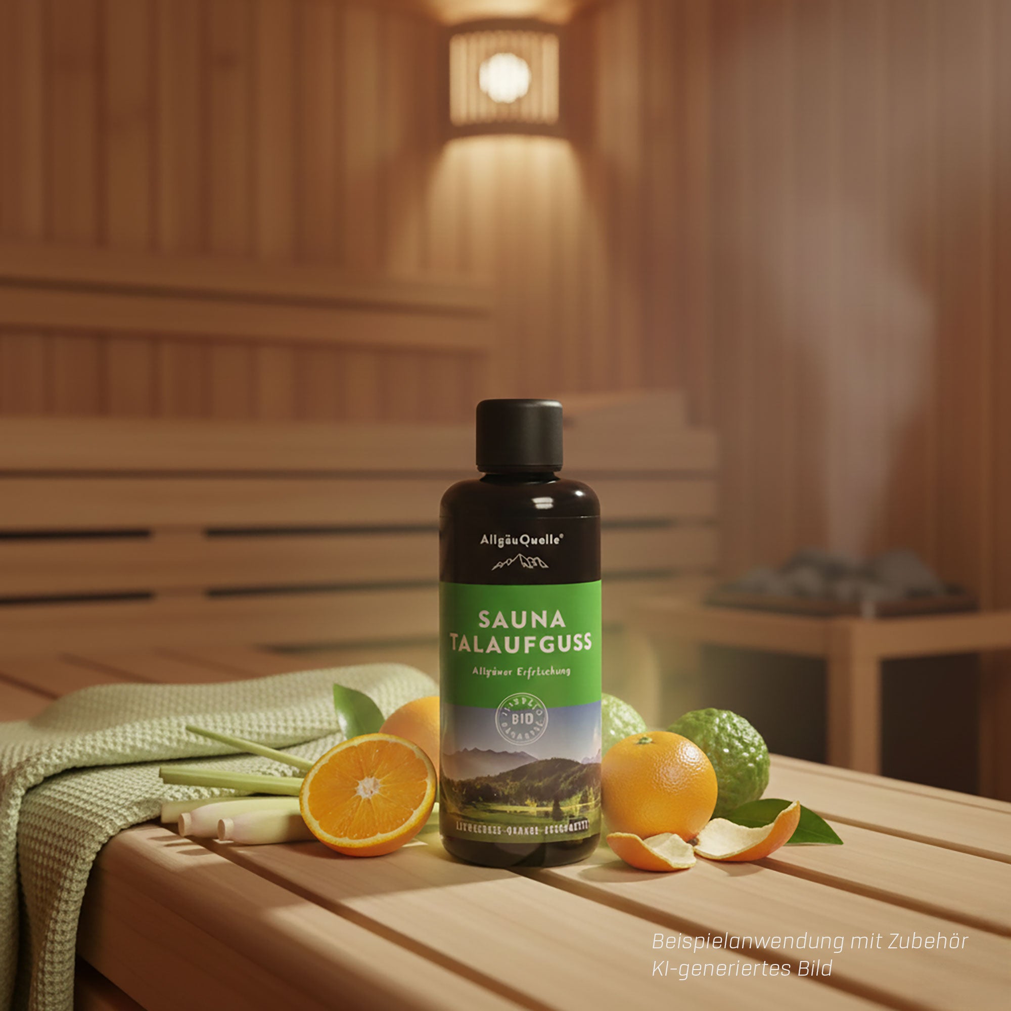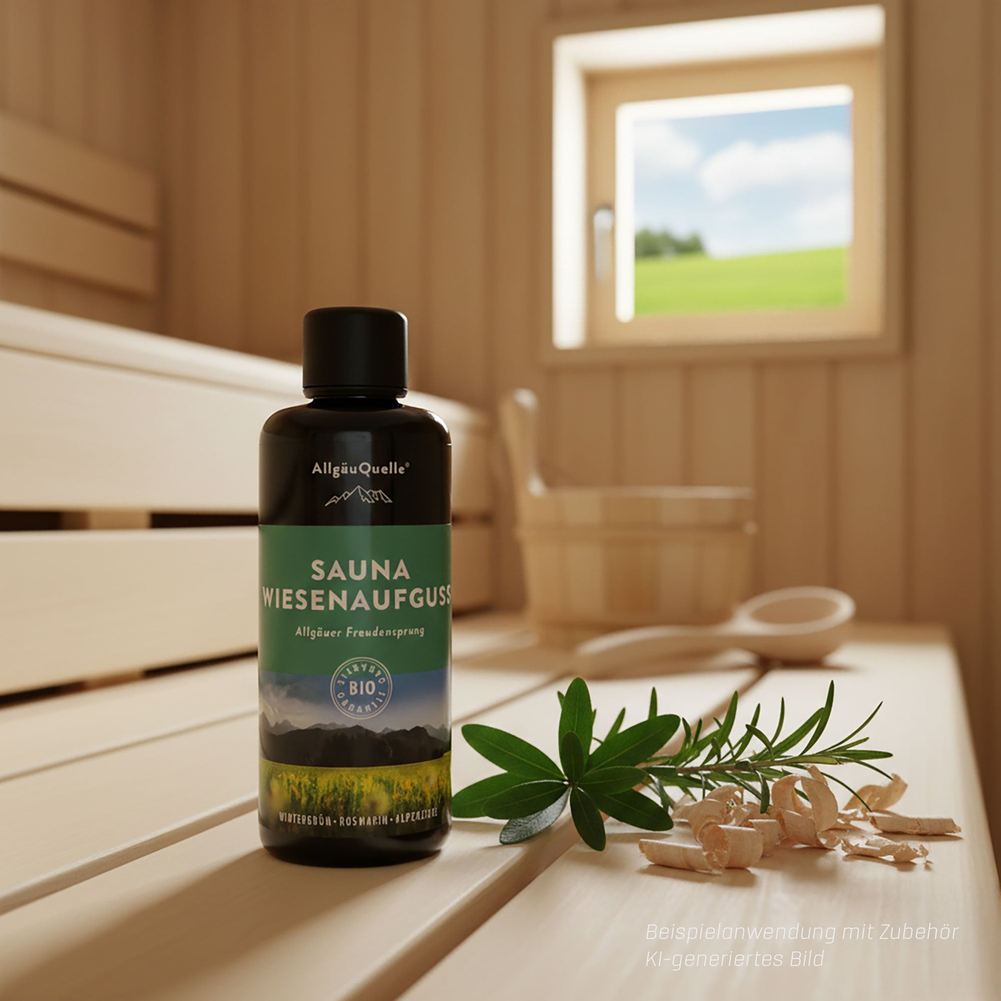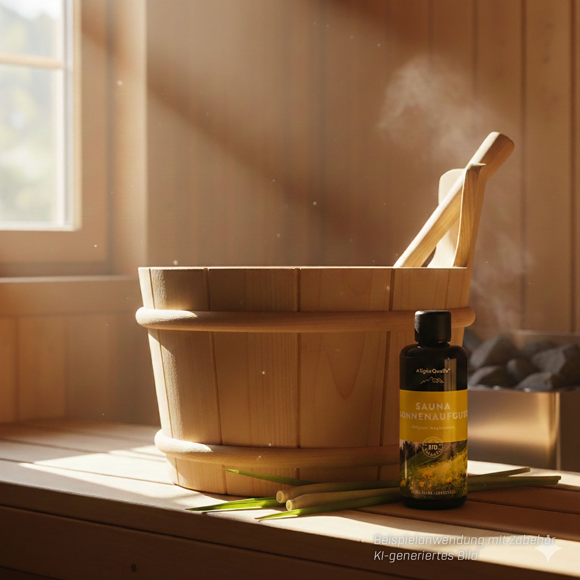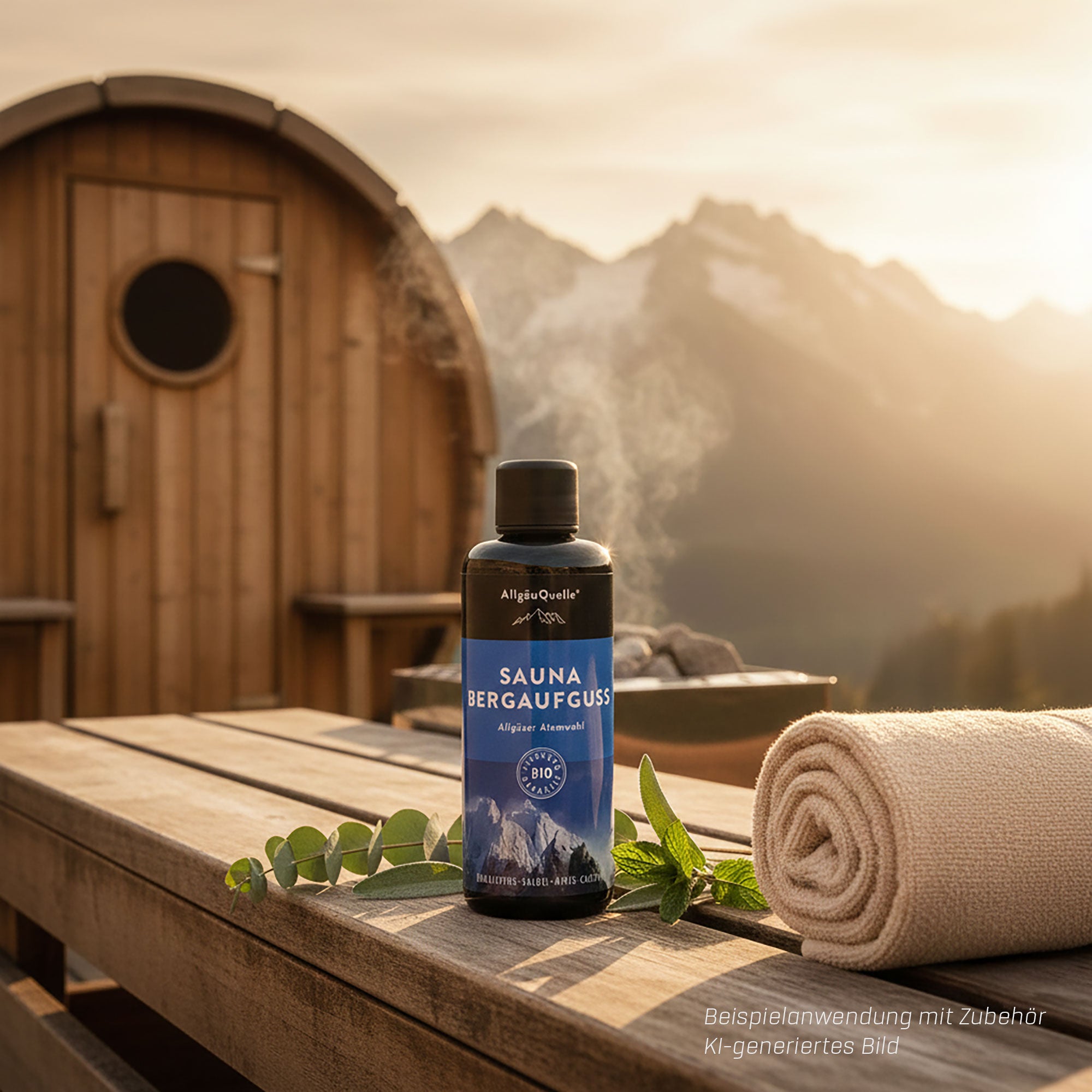 Aus dem Allgäu für deine Sauna: Nachhaltig produziert mit kurzen Wegen und traditionellem Know-how. Ideal für den Heimgebrauch oder Profis – tauche ein in die alpenfrische Duftwelt!